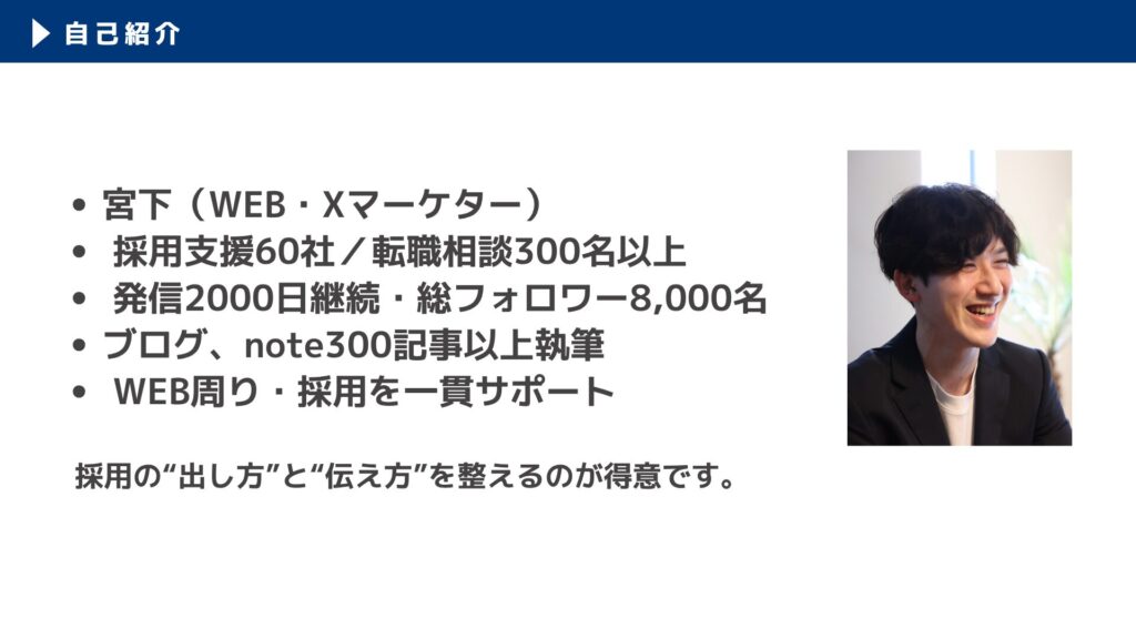 採用の“出し方”と“伝え方”を整えるのが得意です。
