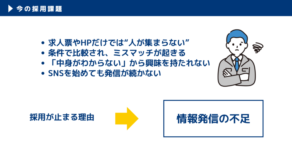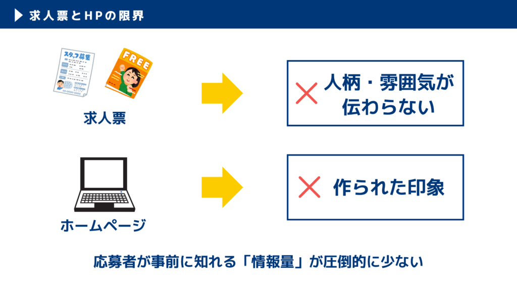 - 求人票とHPでは “人柄・雰囲気・価値観” が伝わらない