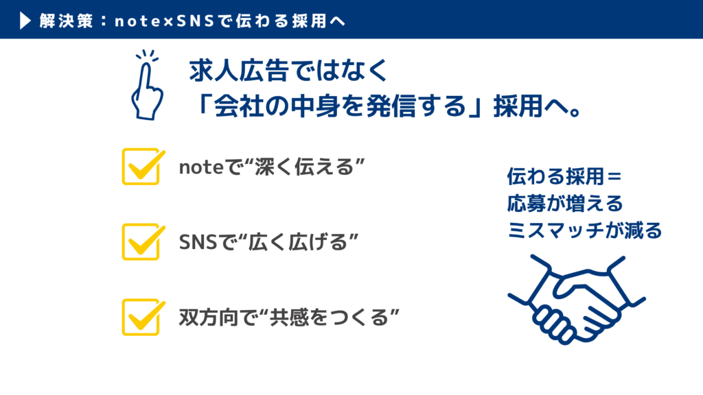 広く届けるSNS × 深く伝えるnote の連携が採用成功のカギです。